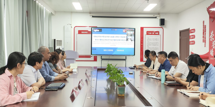 为深化中外合作办学内涵建设,526日下午,信息工程学院在郑州校区办公楼A514隆重举行“计算机应用技术(中外合作办学)专业外籍专家教学周专题研讨会”。会议聚焦教育教学创新与国际合作实践,特邀中加国际合作项目管理专员Bruce Yu、加方外教团队Mrs.Ada AjunwaMr.Hazem Youssef等外方代表出席。信息工程学院党政领导班子成员、专业教师团队共同参与研讨,会议由副院长夏丽珍主持。