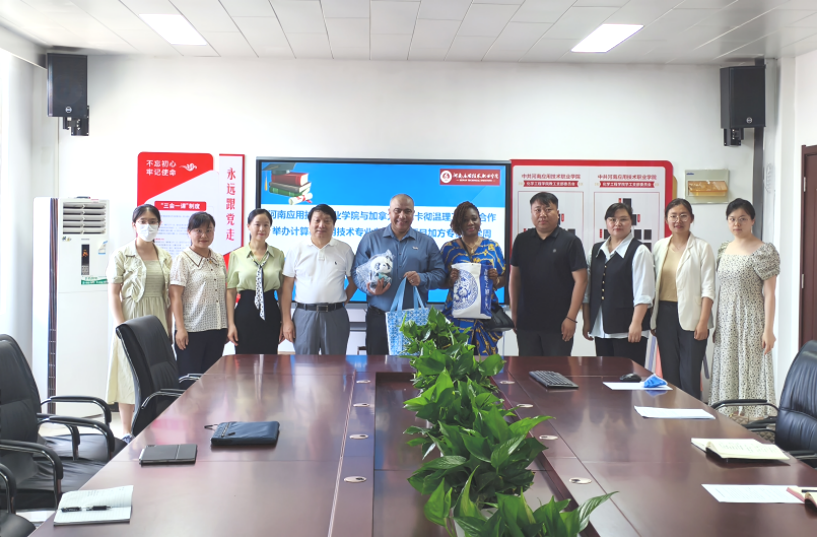 5月19日,河南应用技术职业学院在行政楼512会议室举行了与加拿大萨斯卡彻温理工学院合作计算机应用技术专业专科教育项目加方专家教学周启动仪式。本次会议由副院长夏丽珍主持,参与仪式的有中加国际合作项目主任、项目管理委员会管理专员Bruce Yu,来自加拿大的外教团队Mrs.Ada Ajunwa和Mr.Hazem Youssef老师、科研外事处游渊副处长、信息工程学院党总支书记崔琳、学院院长王雷,语言助教老师李改玲,学院教师代表曲宏阳与学生代表。