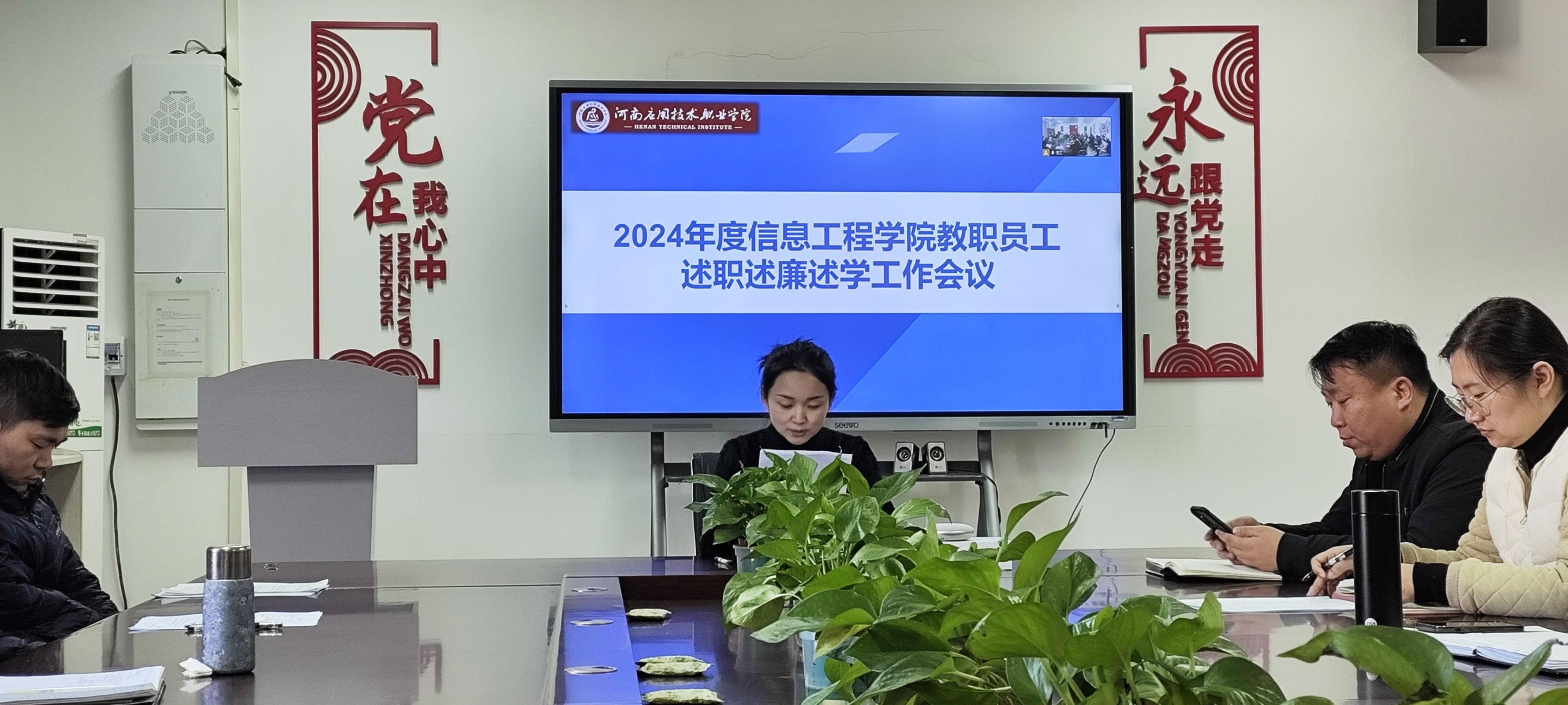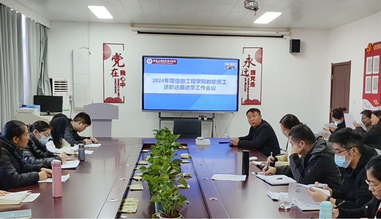 2025年1月15日,2024年度信息工程学院教职员工述职述廉述学工作会议在郑州校区A514、开封校区F314召开。会议由信息工程学院院长王雷主持并发表重要讲话。副院长夏丽珍、齐峰及全体教职工参加。