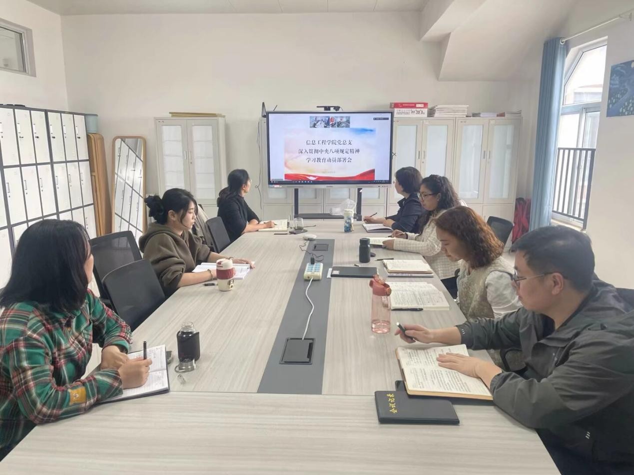 会上,信息工程学院党总支书记崔琳做动员讲话。她指出,这次深入贯彻中央八项规定精神学习教育,是巩固深化主题教育和党纪学习教育成果、纵深推进全面从严治党、推进作风建设常态化长效化的重要举措,是密切党群干群关系、巩固党的执政基础的必然要求,是推进中国式现代化的有力保障,全体党员干部要进一步增强开展学习教育的思想自觉、政治自觉和行动自觉,确保学习教育在我院组织好、开展好、落实好。