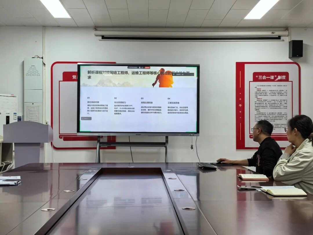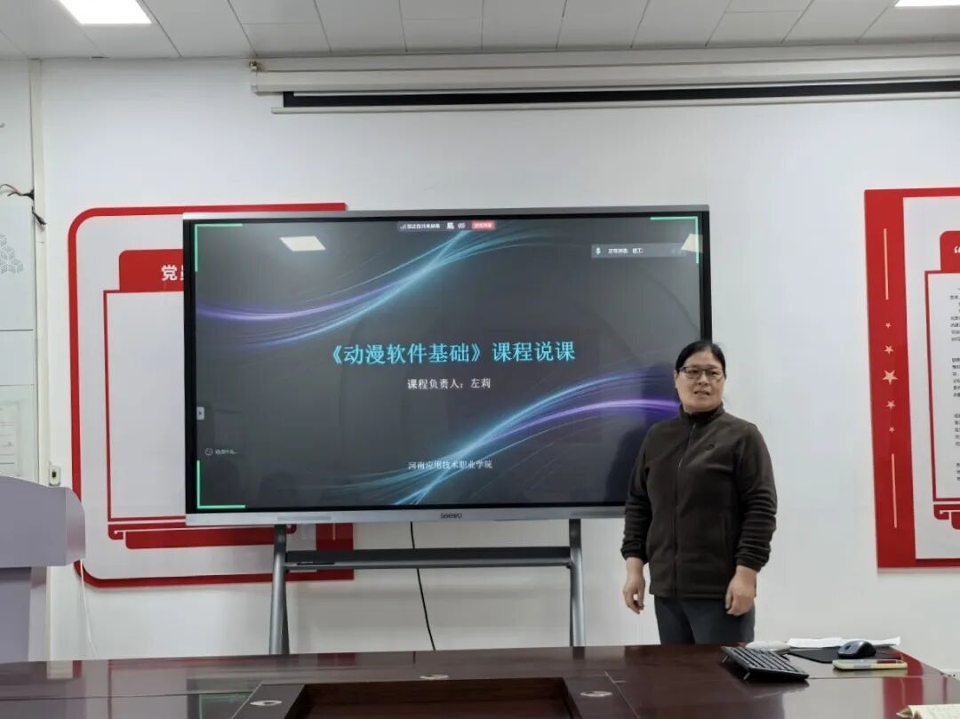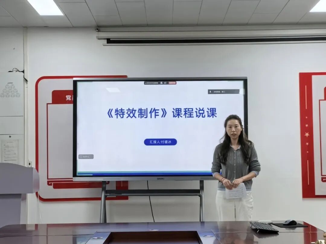 在说课环节,七位课程负责人依次登台进行汇报。张振平老师的《网络系统集成》紧扣行业标准与职业资格认证要求,采用项目化教学组织逻辑,着力培养学生网络规划与系统集成能力;孙奕老师的《基站建设与维护》紧密对接通信行业岗位需求,融入真实工程案例,强化学生规范操作意识与故障排查能力;李阔老师的《路由交换技术》遵循“基础—进阶—综合”的递进逻辑,融入技能大赛考核要点,并建有配套虚拟仿真平台支撑混合式教学;王碧琳老师的《品牌设计》紧跟行业前沿,引入企业真实命题驱动项目化教学,采用过程性考核与作品集评审相结合的评价方式;余斐斐老师的《数字造型设计》立足数字创意产业需求,突出模块化与递进性,将1+X证书标准融入教学单元,并开发了系列微课与实训案例库;左莉老师的《动漫软件基础》注重基础性与应用性相结合,采用任务驱动法通过典型项目引导学生掌握软件核心功能,评价方式注重过程考核与学习成效;付媛冰老师的《特效制作》聚焦影视特效行业标准,以项目实战贯穿教学全过程,着力培养学生特效制作与创意实现能力。