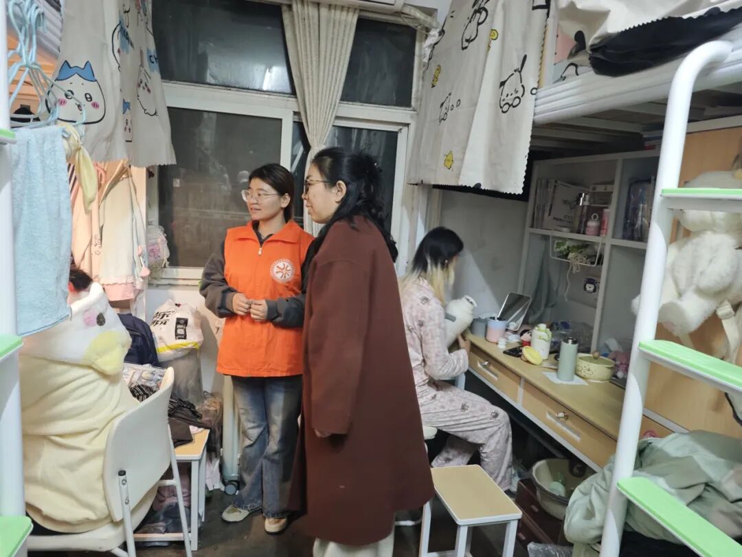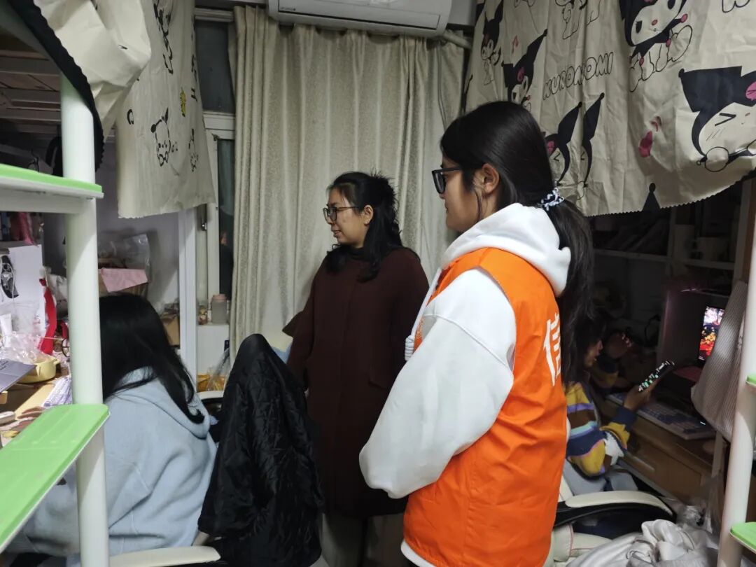 团总支书记冷月对女生宿舍进行了全面安全检查,重点排查了用电安全、消防设施配备及使用情况,并对宿舍内务整理、物品摆放、卫生保洁等方面提出明确要求。她在检查过程中与同学们充分沟通,耐心听取同学们的实际需求,同时严肃强调了安全规范的重要性,要求全体学生严格遵守宿舍管理规定,自觉维护安全有序的居住环境。