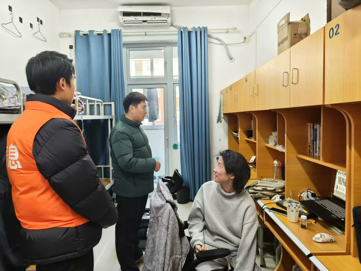 为切实做好假期宿舍安全工作,着力消除安全隐患,共筑平安校园,信息工程学院副院长齐峰、副书记蒋欣哲带领辅导员们深入学生宿舍关注学生诉求,提醒学生归家时注意乘车安全、财产安全;要求其在离校前做好宿舍内的断电、关窗、落锁等工作,并耐心复查验收离校学生宿舍。