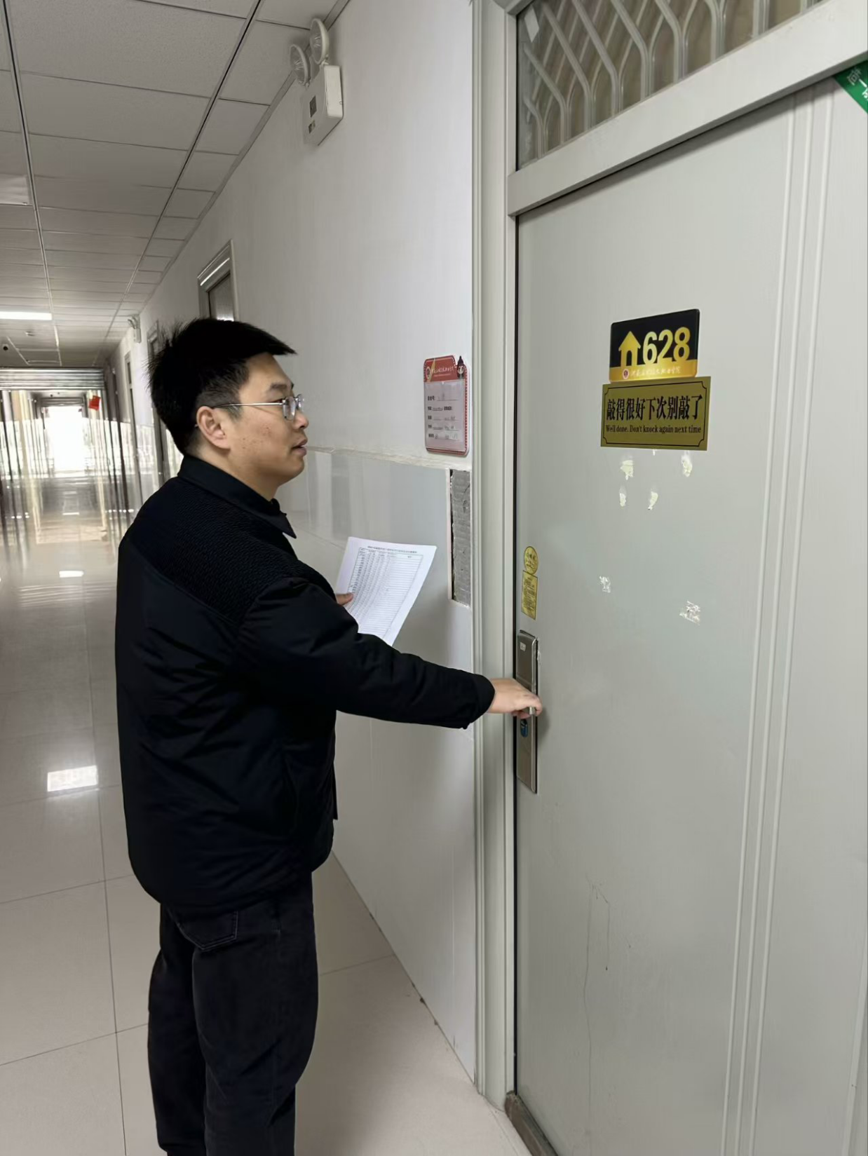 随后,辅导员对全院学生宿舍进行“三关一收”大检查。本次寒假安全检查专项工作,旨在排查学生宿舍安全隐患,营造舒适安全的学习生活环境,为期末及寒假离校期间校园宿舍安全保驾护航。我院将继续秉持“预防为主,安全第一”的理念,持续加强宿舍安全建设,筑牢消防防线,共建平安校园。