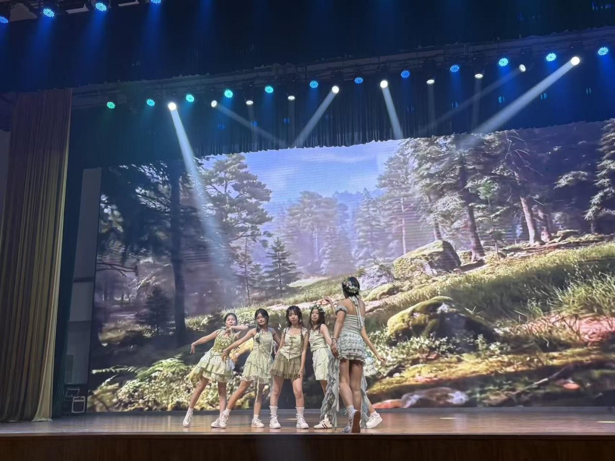 团体表演《森林之子》以“自然共生”为灵感,队员们的动作时而舒缓柔美,模仿林间生灵的灵动嬉戏,手臂舒展如枝叶轻摇,身姿婉转似溪流潺潺;时而激昂有力,展现人与自然共生共荣的磅礴力量,跳跃腾挪间尽显智信学子的意气风发。