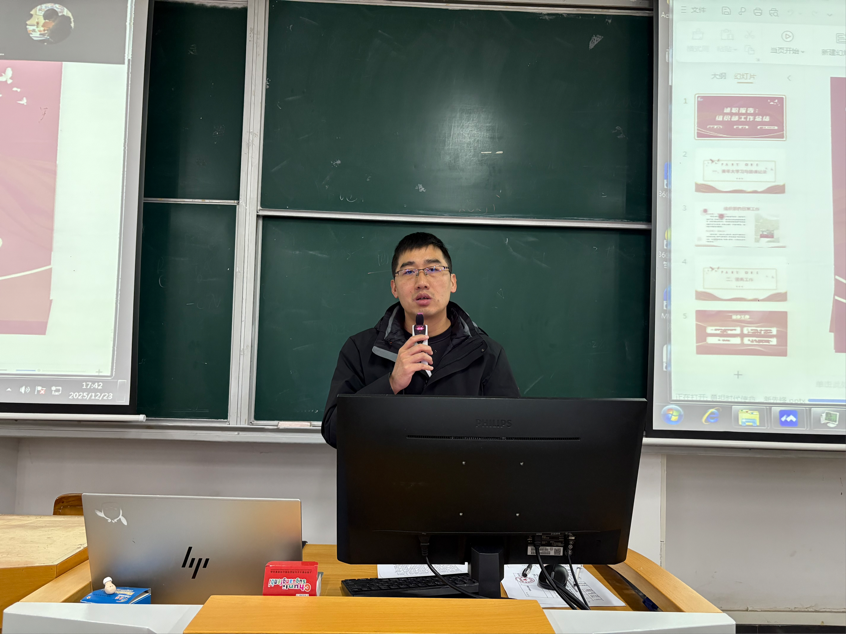 会议的最后,杨帆书记上台致词,他对上述工作汇报给予肯定,并针对汇报中提及的问题短板,提出针对性的改进建议,同时鼓励学生会成员正视不足、主动作为,以精益求精的态度优化工作方法,以凝心聚力的姿态夯实服务基础,让学生会成为学院联系学生的坚实桥梁。
