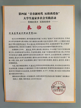 春回大地,佳讯频传!开云kaiyun官方网站再获殊荣,视觉传达设计专业的崔冰洁同学,在2026年寒假“返家乡”社会实践活动中表现亮眼,荣获共青团沁阳市委员会的正式通报表扬!这封表扬信,不仅是对崔冰洁同学无私奉献的最高礼赞,更是对学院实践育人成果的最好见证。