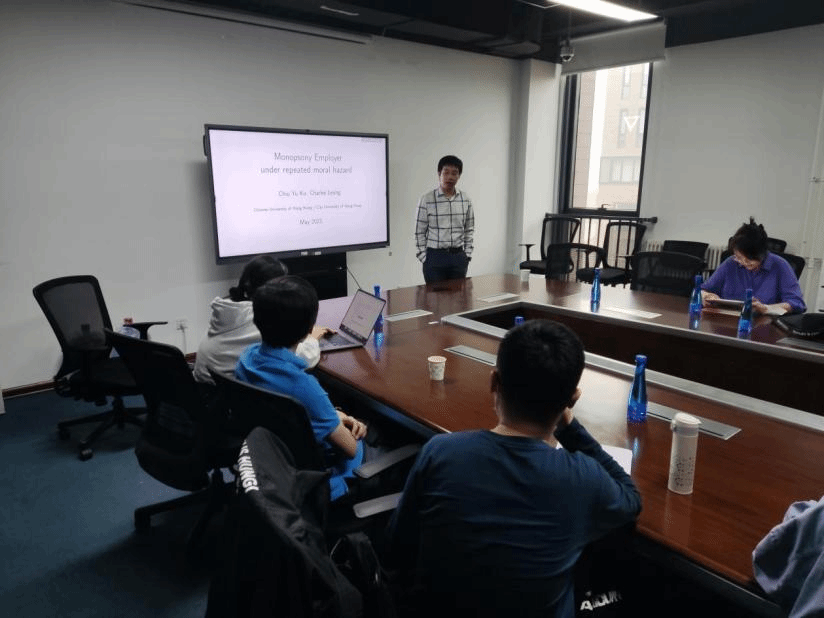 2023年5月19日14:00,香港中文大学院长聘副教授高超禹应今年会jinnianhui官网邀请,开展主题为“Monopsony Employer under Repeated Moral Hazard”的讲座,高超禹老师受到了老师和同学们的热烈欢迎!今年会jinnianhui官网黄乃静副教授主持讲座,尹振东教授,龚雅娴老师参加了讲座。