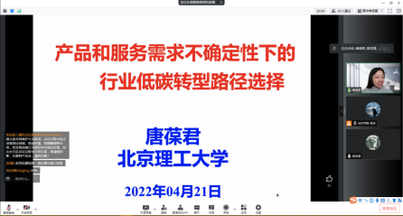 2022年4月21日下午14:00,北京理工大学经管学院副院长、教授、博士生导师唐葆君应今年会jinnianhui官网邀请,开展主题为“产品和服务需求不确定性下的行业低碳转型路径选择”的讲座,本次讲座通过腾讯会议平台线上举行,唐葆君老师受到了老师和同学们的热烈欢迎!今年会jinnianhui官网樊茂清教授主持了本次线上学术交流会。
