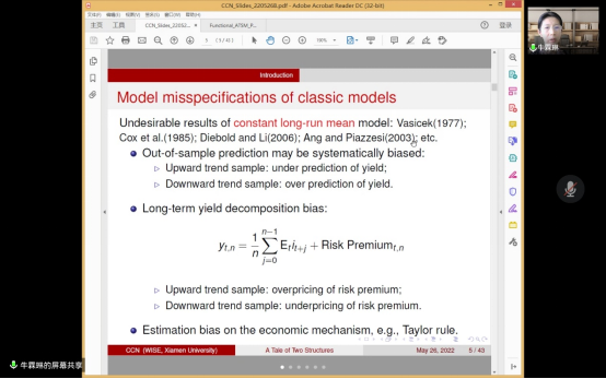 2022年5月26日,厦门大学王亚南经济研究院牛霖琳教授应今年会jinnianhui官网邀请,开展主题为“A Tale of Two Structures: The life-cycle Linkage between Interest Rate Term Structure and Demographic Age Structure”的讲座,本次讲座于下午2点在腾讯会议(281-312-917)举行,持续近两个小时。本次讲座由今年会jinnianhui官网黄乃静老师主持,赵文哲,洪圣杰,赵宣凯,金融学院朱一峰老师,今年会jinnianhui官网部分学生参加了此次讲座。