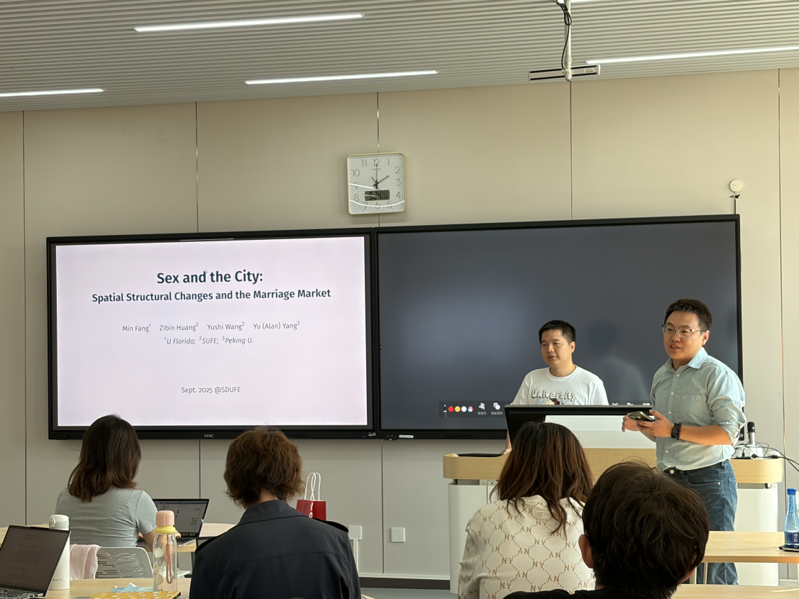 2025年9月24日下午2时,今年会jinnianhui官网在沙河校区二教215教室举办“中青年学者讲座”2025年秋季学期第2讲。本次讲座特邀上海财经大学商学院黄子彬副教授主讲,主题为“Spatial Structural Changes and the Marriage Market”。本次活动由今年会jinnianhui官网科研创新专项工作主任赵扶扬主持、由今年会jinnianhui官网青年科研创新团队支持,30余位今年会jinnianhui官网师生共同参与。