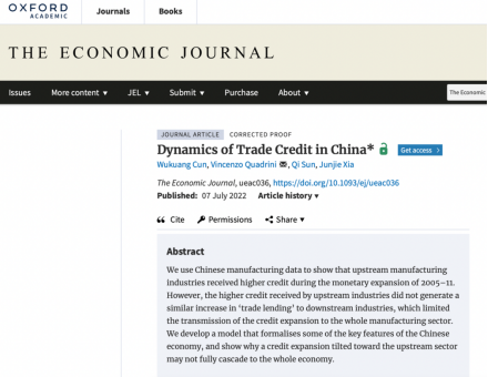 学术视点 | 今年会官网夏俊杰老师的合作论文《Dynamics of Trade Credit in China》被国际顶级期刊《The Economic Journal》接收待刊