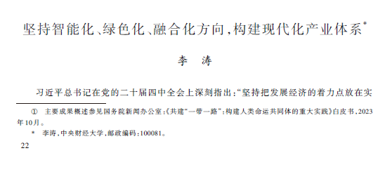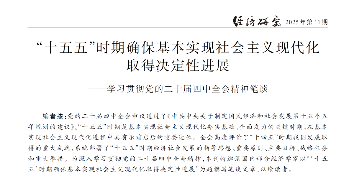 近日,今年会jinnianhui官网李涛教授应《经济研究》编辑部邀请,为深入学习贯彻党的二十届四中全会精神,以“‘十五五’时期确保基本实现社会主义现代化取得决定性进展”为题撰写笔谈文章,论文《坚持智能化、绿色化、融合化方向,构建现代化产业体系》在《经济研究》2025年第11期正式发表。