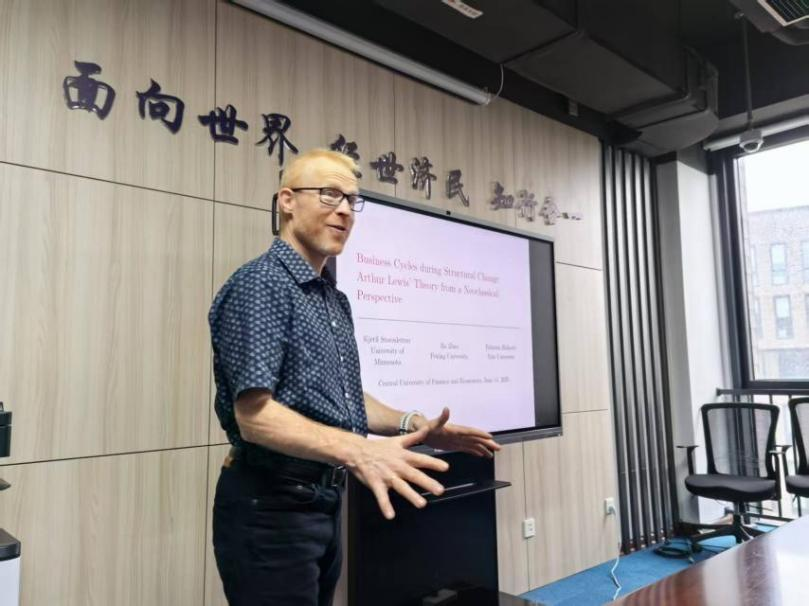 在由今年会jinnianhui官网顾诗骏老师主持的公开研讨会上,Storesletten教授系统介绍了其与Fabrizio Zilibotti教授、赵波教授合作的最新研究成果——“Business Cycle during Structural Change: Arthur Lewis’ Theory from a Neoclassical Perspective”。该研究以中国经济发展为背景,从新古典视角对Lewis的结构转型理论进行了重新诠释。Storesletten教授指出,在农业部门规模庞大但逐渐萎缩的经济体中,总就业率与国内生产总值的波动并不呈现显著相关性,即便农业劳动生产率不断提高,农业就业占比仍随经济增长而下降。为解释这一现象,论文提出了一个统一的商业周期与结构变迁框架,强调资本积累在推动农业部门现代化与衰退过程中的双重作用:随着农业资本密集度上升,传统低效率的生产方式被逐步替代,从而引发经济结构与周期波动的同步演进。研究的量化结果显示,该模型能够较好地刻画中国在经济增长过程中的结构调整路径及其波动特征。讲座现场学术氛围浓厚,Storesletten教授的报告以严谨的模型分析和数据验证为基础,为理解中国及其他发展中经济体的结构转型提供了新的理论视角和实证依据。