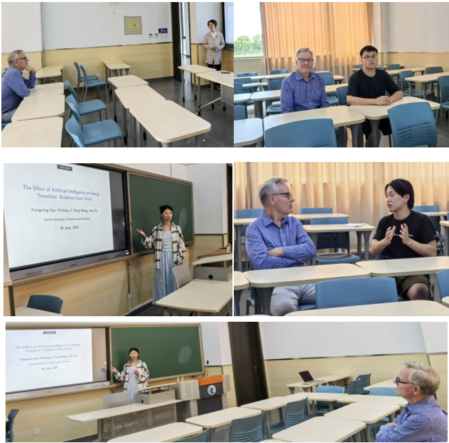 在宏观经济与区域发展领域,Brandt教授基于其最新发表在The Review of Economic Studies的研究成果“Barriers to Entry and Regional Economic Growth in China”,深入分析了进入壁垒、市场准入摩擦与制度环境对区域经济增长的影响。他指出,中国各地区在市场开放度、资源配置效率与制度执行力方面存在显著差异,而这种异质性是解释区域经济增长差距的重要因素。教授强调,未来研究应更加注重微观数据与宏观机制的结合,通过制度视角理解经济增长的内在逻辑。在座谈过程中,Brandt教授从研究问题的选取、数据建构到模型设定等多个层面给予了系统指导,帮助青年学者深化对创新驱动与区域发展机制的理解,提升理论分析与实证研究的结合能力。此次研讨不仅拓展了师生对中国经济复杂性的认识,也为未来开展国际合作研究奠定了坚实基础。