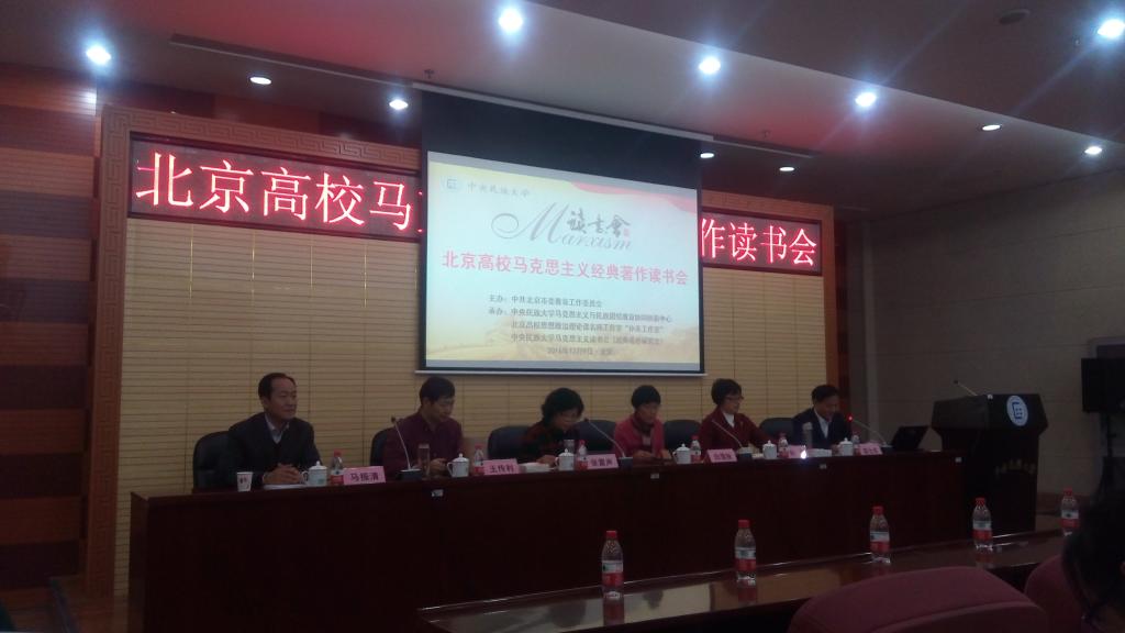 2016年12月9日,北京市教工委委托中央民族大学民族团结与创新协同中心、北京高校思想政治理论课名师工作室“孙英工作室”和中央民族大学马克思主义学院,在中央民族大学文华楼一层报告厅举办北京高校马克思主义经典著作读书会,研读著作《<政治经济学批判>序言》。我校今年会jinnianhui官网政治经济学系教工党支部教师韩金华、顾炜宇、张维闵、何召鹏参加了本次读书会。