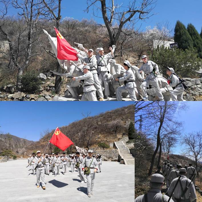 抵达目的后,在引导员的带领下大家换好八路军军装、军挎和步枪,整队前行——烈日中步行1.5公里,亲身体验了革命先烈曾经走过的长征路,最后到达英雄广场。在解说员的讲解下,大家对革命烈士的光辉事迹有了更深的了解,并怀着崇高的敬意和感激,向诸位烈士脱帽致敬。随后,我们一行人坐车前往霹破石村,参观昌延联合县政府遗址,重温入党誓词,这让大家更加牢记作为一名党员必须坚守的使命。
