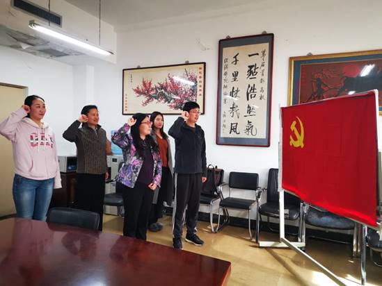 会议开始,大家面对党旗,举起右拳,重温入党誓词。“我志愿加入中国共产党,拥护党的纲领,遵守党的章程,执行党的决定……”。铿锵有力的誓言在四周回荡,让在场的每一位同志都接受了一次深刻的党性教育。