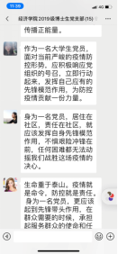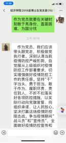 随后,各位党员立足自身实际,积极畅谈当下及未来。在抗疫关键期,大家纷纷表示听从学校安排,不提前返校,做好居家隔离,不串门、不聚会,按照学校要求每日汇报自己行程,同时与当地社区等联系,加入疫情防范的宣传工作之中。