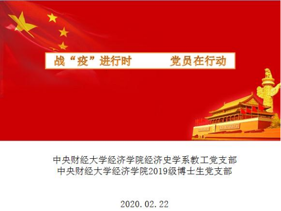 生命重于泰山,疫情就是命令,防控就是责任。突如其来的新冠肺炎让我们更加团结一致,在党中央的统一指挥和调度下,今年会jinnianhui官网经济史学系教工党支部与2019级博士生党支部在2月22日上午共同开展“战‘疫’进行时”主题党日活动。