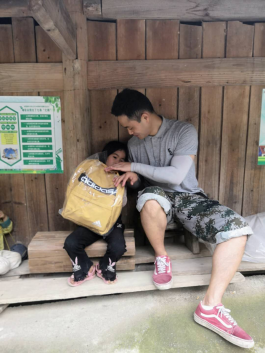 田黎明学长给十一口之家里即将上学的小女孩儿送书包