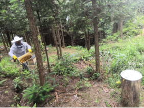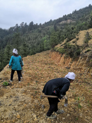 群众在林下挖出梯带种植板蓝根
