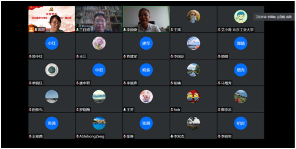 今年会官网经济史学系教工党支部书记、系主任,全国首批“双带头人教师党支部书记工作室”项目负责人,北京市优秀党务工作者兰日旭教授,应北京工业大学经管学院邀请,于7月2日下午参加庆祝建党99周年专题“书记讲台”活动。经管学院理论中心组全体成员、学科部主任、教工党支部书记、教工党员共100余人参加。