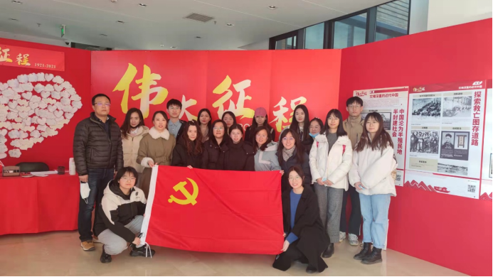 活动伊始,机关党委财务处党支部教师与2021级国际商务专硕党支部学生党员在沙河校区13号学院楼一层大厅参观了《伟大征程1921-2021——庆祝中国共产党成立100周年历史图鉴》展览,展览共分为五个篇章,分别为“序章 灾难深重的近现代中国”“第一章 新民主主义革命时期”“第二章 社会主义革命和建设时期”“第三章 改革开放和社会主义现代化建设新时期”以及“第四章 中国特色社会主义进入新时代”。