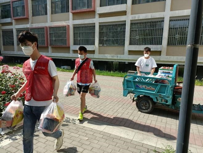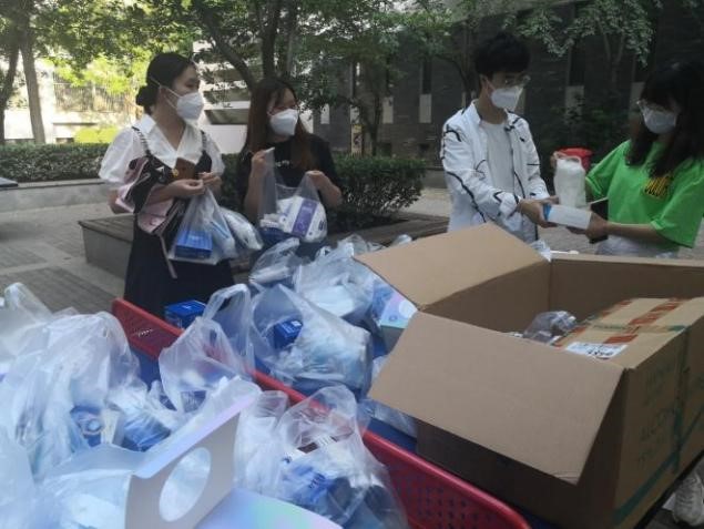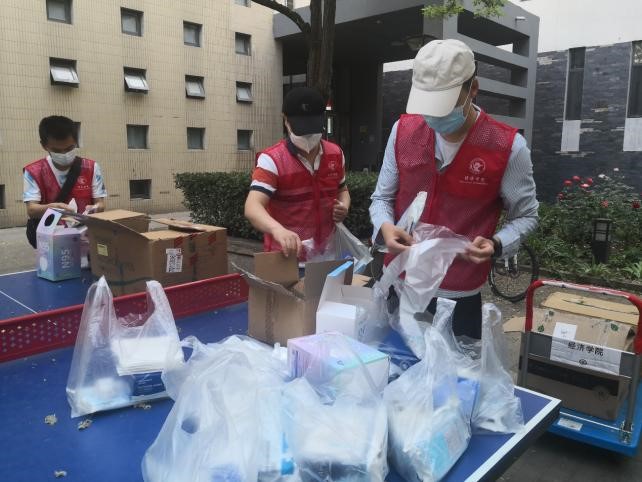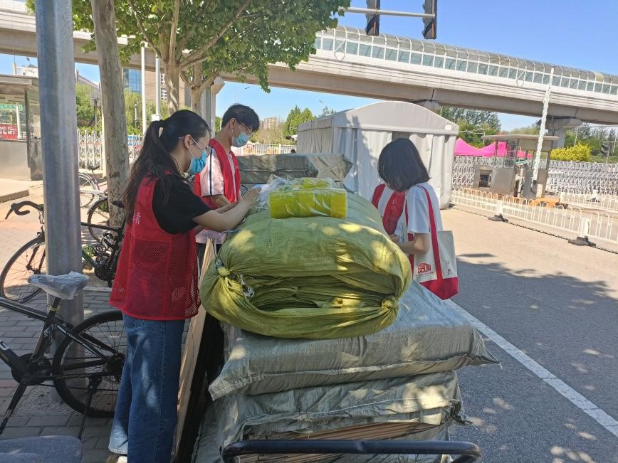 5月26日,为方便毕业整理物品和行李打包,学院驻校教师和党员志愿者为毕业年级同学发放打包所需纸箱和袋子。