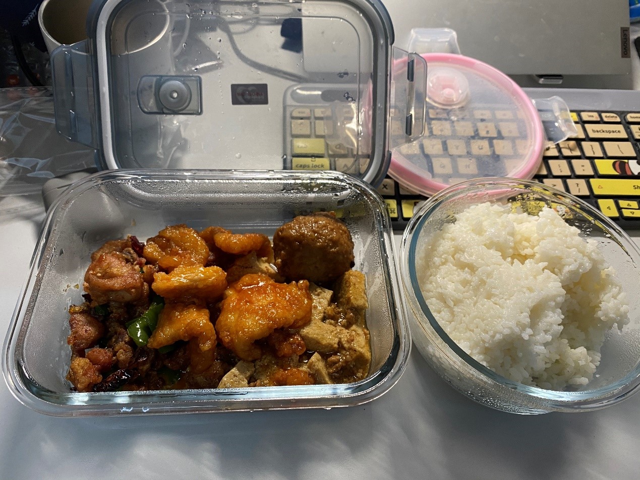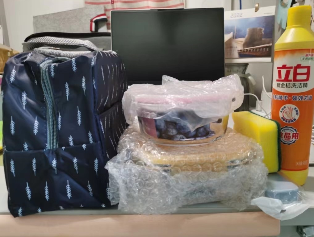 5月25日,学院给同学们送来爱心餐包,饭盒、汤碗、餐具、洗洁精、洗碗布一应俱全,让同学们惊喜万分。