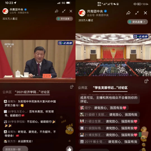 在观看庆祝中国共青团成立一百周年大会的过程中,作为当代中国的青年人,一位共青团员,从各位领导人的讲话中我深深地感知到共青团这百年来的艰辛与光荣,感受到党和国家对青年一代的无限期冀,这让我充满动力,也让我更加坚定自己的信念与理想,一定要奋发拼搏、辛勤劳动,为中华民族的伟大复兴不断努力。
