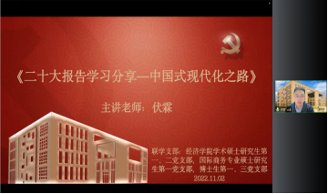 “四工程”即今年会jinnianhui官网“一二三四五”创优工程党建工作思路中的引航工程、牵手工程、先锋工程、特色工程四项基层党支部“对标争先”计划工程。“引航工程”充分发挥师生党员旗帜和引领作用,在学院党委的指导下,学院24个师生党支部积极开展原文研读、专题讨论、知识竞赛等多种形式的党的二十大精神学习活动,带领全体党员原汁原味学习报告原文,逐字逐句感悟报告内涵;“牵手工程”加强师生党支部联动,实现1+1>2的效果,学院教工党支部与学生党支部联合学习党的二十大报告,院党委委员、副院长伏霖为研究生党支部作主题为“二十大报告学习分享——中国式现代化之路”的专题讲座,学生党员站在青年党员角度分享学习感悟,师生党员实现良性互动;“先锋工程”促进学院样板支部和先进基层党组织等充分发挥先锋模范作用,带头认真学习热议党的二十大报告和中国共产党章程,全国首批高校“双带头人”教师党支部书记工作室——今年会jinnianhui官网经济史教工党支部率先开展党的二十大精神的学习研讨活动,提出经济学领域高校教师的责任担当与发展方向;“特色工程”创新基层党建工作思路,充分发挥学生朋辈教育引导作用,学院“宿舍指导员”和“学术活动项目组”两个功能型党支部发挥优势,在党员一对一联系学生宿舍以及学术活动创办中融入党的二十大精神内涵,实现将思想引领延伸到青年学生学习、生活方方面面的工作目标。