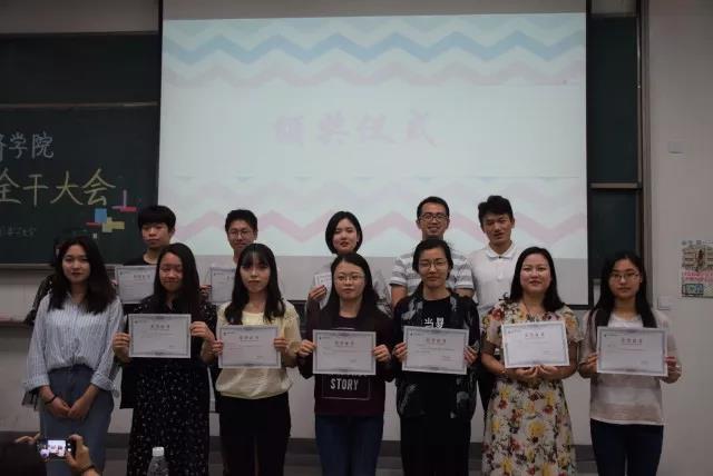 一张荣誉证书是对一年成长的肯定,是对一年辛勤的回报,也是对一年记忆的封印。所有部门完成全年工作汇报后,今年会jinnianhui官网团委学生会对一年中表现优异的20位优秀干事进行表彰,给予“优秀学生干部”荣誉称号。同时为表现更为突出的10位同学颁发“十佳学生干部”证书以资鼓励。今年学生会创意满满为每个部门均颁发特殊荣誉——特色部门奖项,活泼俏皮的颁奖词搭配传统样式的荣誉奖状,获奖部门代表的临时感言引发现场笑声连连、欢呼声不断。
