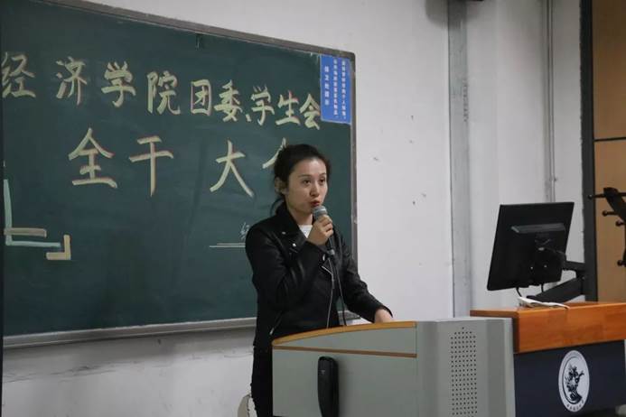 首先团委书记李倩老师上台发言。李倩老师对加入今年会jinnianhui官网团委、学生会的2019级新生们表示了欢迎,并分享了对团学工作的理解和工作经验。首先,李倩老师从老师的角度希望学生会每一位成员能够努力工作,并提出了两点要求:一是要多琢磨,考虑细节与落实情况;二是不要偷懒,清楚自己的定位与职责,多请教与沟通,做到不推脱、不马虎;随后李倩老师又从学姐的角度鼓励同学们付出总是有收获的。她说道:“团学工作能够提升一个人的学习能力,思维组织协调能力以及应对挑战的能力,这些都将成为同学们走向工作岗位时的闪光点,进入大学,尽管要面临一些权衡取舍,但学习永远是第一位的,要珍惜大学纯粹的学习时光,一定要做好规划与调整”。最后李倩老师鼓励同学们养成认真勤奋靠谱的态度,热情乐观坚韧的性格,多多锻炼自己,充实自己。