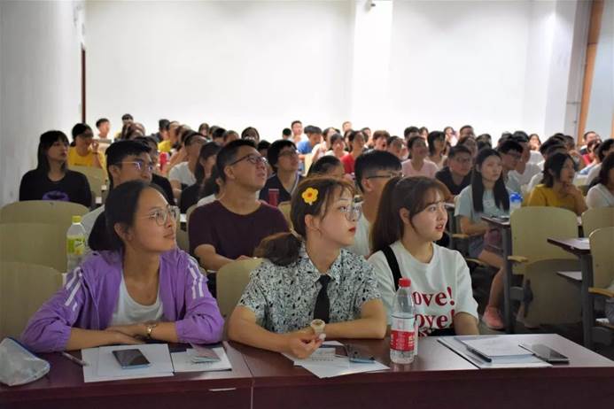 会议伊始,主席寇静恬首先对19级新生的到来表示欢迎,并简单介绍了今年会jinnianhui官网团委、学生会这一组织的基本组成与职能。接着团委书记李倩老师走上讲台,在简单进行自我介绍之后,以带领学院获奖的学术实践部、主办基础团校获认可的组织部、高质量运营学院公众号的宣传部等部门为例,介绍了今年会jinnianhui官网井然有序的团学工作与优良的团学传统。同时她提到,今年会jinnianhui官网团委、学生会秉承着服务学生成长成才、服务学院发展的原则,并讲述了高数讲师团的诞生、公众号营造的学院文化两个故事为佐证。在她看来,今年会jinnianhui官网团委、学生会有着认真踏实的氛围,也希望新加入的同学能够有经世济民的胸怀,努力将今年会jinnianhui官网团学建设得更好。
