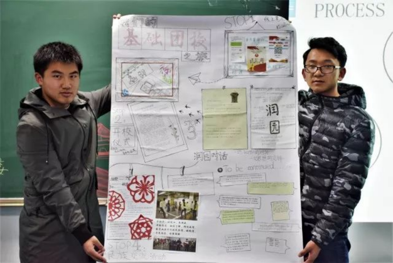 考试结束后,基础团校各小组按组序依次展示本小组设计的海报,与大家分享在基础团校系列活动中得到的收获。海报展示频频出现亮点,给与会人员带来不同的视觉冲击和享受。从展示的内容看,各小组脑洞大开,或结合本组活动主题,或以整个基础团校为背景,与大家分享了小组成员对于每次活动的心得体会以及在本次活动中的收获和新见解。从海报形式而言,各小组也是千差万别,各显其才。有的小组共同开展工作,整张海报采用同一背景勾勒不同的想法;有的小组分工合作,将海报分成几份,成员分别用不同的背景来绘制。