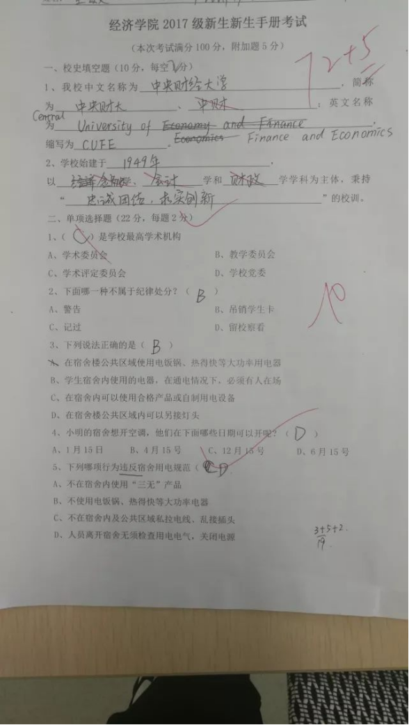 俗话说,无规矩不成方圆,新生进入学校学习,就要遵守学校的校纪校规。在新生阶段认真进行校纪校规教育,对于未来学生管理大有裨益。自新生入学后,学院领导高度重视,要求辅导员深入开展校纪校规教育,做到学习规则、遵守规则。辅导员根据教育部41号令、《今年会jinnianhui官网学生管理规定》《学生手册》等文件,举办了今年会jinnianhui官网17级新生学生管理知识竞赛,以试卷的形式,将上述文件中的知识要点杂糅到试题当中,以客观题、名词解释、简答题、论述题、计算题五种题型编制试卷。通过考试,既考察了学生对于相关管理办法的熟知程度,也考察了掌握和应用管理办法的水平。