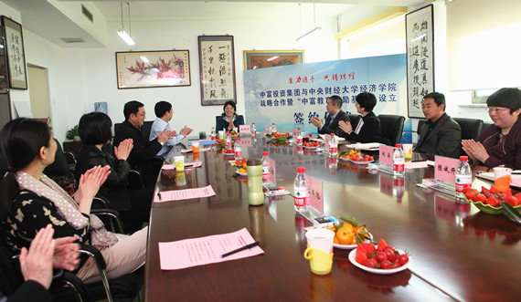 见证了双方牵手合作全过程的赵丽芬副校长在讲话中表示,看到自己昔日的学生今日事业有成,以感恩之心融智捐资助学院发展,她感到非常高兴,非常欣慰。欢迎周飞同学回到母校,感谢中富投资集团对学院发展和学校人才培养的鼎力支持。周飞校友的善举正是中财人“担当责任 勇往直前”精神的传承。一批批中财学子在校期间刻苦学习,走上工作岗位后努力拼搏,勇于担当的优秀品质为学校带来了良好的社会声誉。她指出,今年会jinnianhui官网从2000年经济系成立至今,经过十五年的孕育和发展,如今已驶上了快车道,在教育教学、学科建设、师资队伍和人才培养等方面取得了一定的成绩,希望学院能以此次合作为契机,一方面与中富投资集团聚力携手,优势互补,紧密合作,取得新的成绩;另一方面,充分利用合作平台,培养更多的优秀学子,能够成为引领社会向前向上发展的中流砥柱。