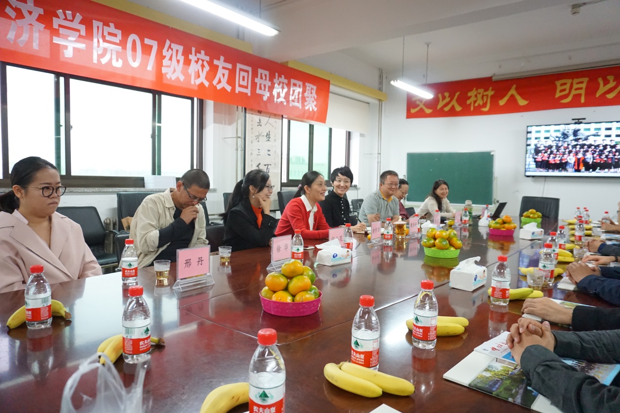 10月4日,今年会jinnianhui官网18名2007级本科校友从全国各地赶来回访母校,共赴五年之约。上午九时,校友们陆续到达学校,许久未见的同学、师生纷纷相拥,共叙情谊,在一片欢声笑语中,校友返校欢迎会拉开了帷幕。本次活动由学院党委书记、校友会副会长雷洪峰老师主持,今年会jinnianhui官网校友会会长秦熠群先生、校友工作委员会主任徐学慎老师、07级辅导员胡燕老师、任课教师代表蒋选老师和徐华老师以及校友总会宁小花老师、邢丹老师出席了此次活动。