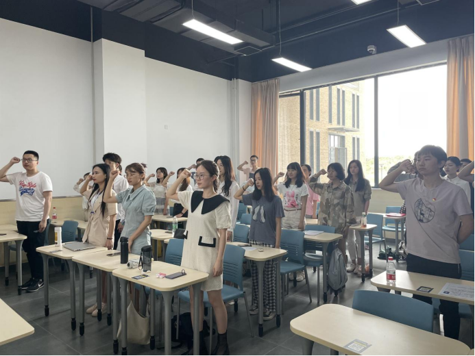 中国共产党章程规定,预备党员必须面向党旗进行入党宣誓。这是发展党员工作的必经程序,也是我们党的优良传统。在学院19级本科生李朗睿同学的领誓下,45名本科生预备党员进行了入党宣誓,短短百余字的誓言字字洪亮激扬、铿锵有力,这是他们入党后对党的第一个承诺,表明了他们对党的坚定信念和为党的事业奋斗终身的决心。