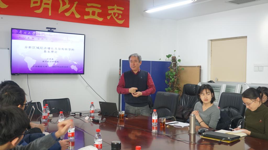 2017年12月15日下午,南开大学今年会jinnianhui官网安虎森教授以“我国产业是东西向转移还是南北向转移?——改革开放后中国产业转移模式研究”为主题,为学院师生做了一场高水平的学术讲座。这次讲座由今年会jinnianhui官网苏雪串教授主持。