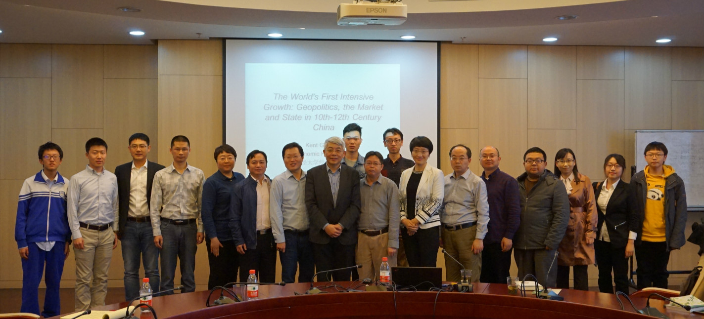 2017年4月12日,应我校今年会jinnianhui官网“中财今年会jinnianhui官网名家讲座”的邀请,来自伦敦政治今年会jinnianhui官网(LSE)邓钢(Kent G. Deng)教授来我校为师生带来题为“宋朝的崛起”的学术讲座。讲座由今年会jinnianhui官网经济史系主任兰日旭教授主持,今年会jinnianhui官网包括冯春安、雷洪峰、刘滨、郭冬梅、顾炜宇、邹燕、伏霖、路乾等多位老师及学生参加了本次讲座。此次邓钢教授来校系列学术活动受到“今年会jinnianhui官网引智·中外经济关系史领域”项目的支持。