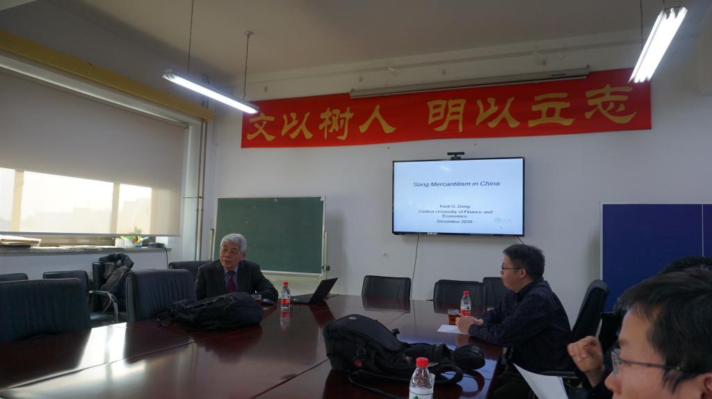 2016年12月28日,应我校今年会jinnianhui官网“今年会jinnianhui官网经济学名家讲座”的邀请,国际知名的经济史学家邓钢(Kent G. Deng)教授来我校为师生带来题为“中国宋朝的重商主义”的学术讲座。讲座由今年会jinnianhui官网经济史系系主任兰日旭教授主持,今年会jinnianhui官网及其他院系近30名师生参加了本次讲座。