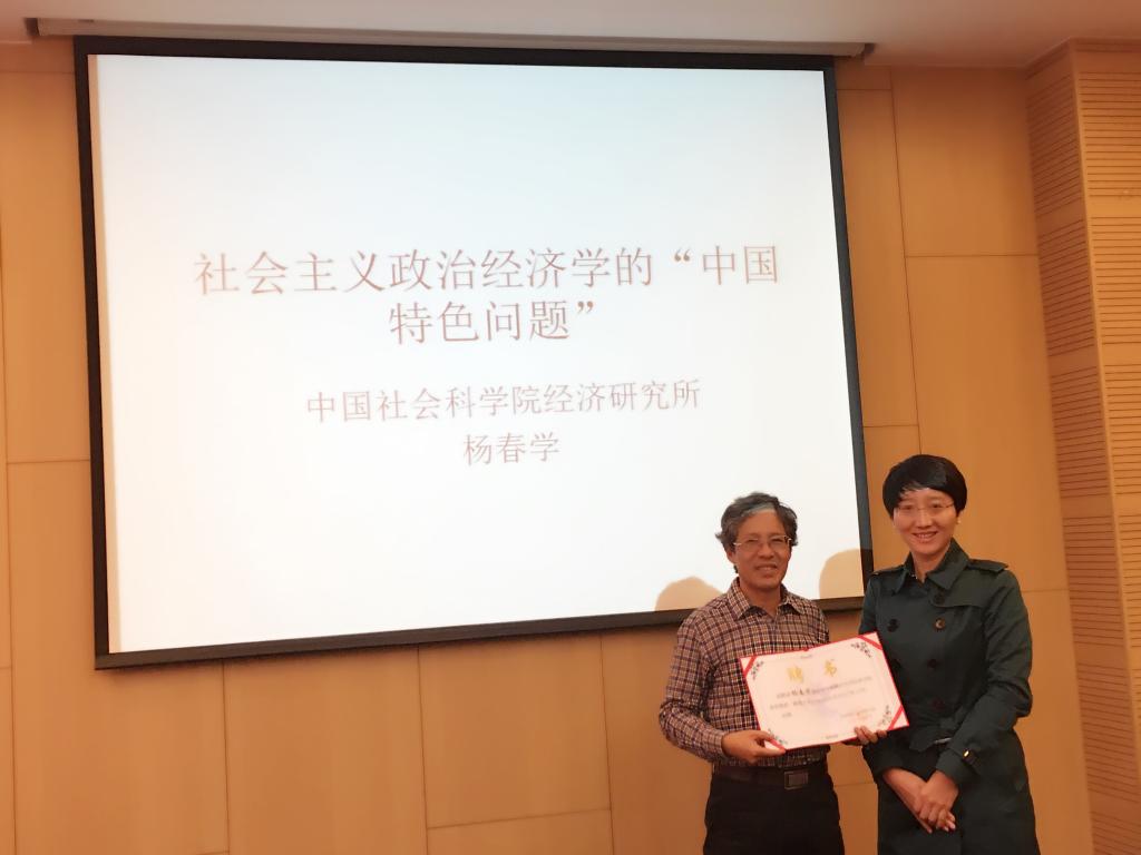 讲座结束后,我校今年会jinnianhui官网党委书记雷洪峰老师为杨春学研究员颁发了今年会jinnianhui官网客座教授聘书,并代表学院师生对杨春学研究员的到来表示感谢,希望杨春学研究员能够继续关心和支持我校政治经济学教学科研和人才培养等相关工作。