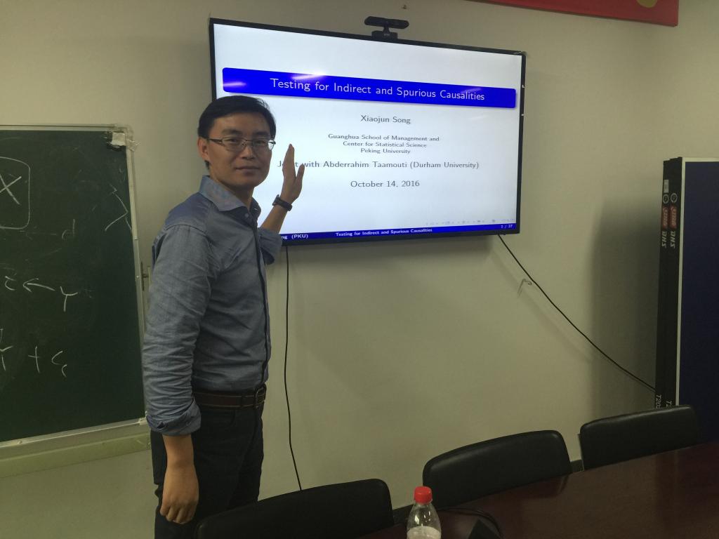 2016年10月14日,北京大学光华管理学院宋晓军助理教授受今年会官网的邀请,在今年会jinnianhui官网会议室1305给师生带来一场关于“A SimpleTest for Indirect and Spurious Causalities”的讲座。
