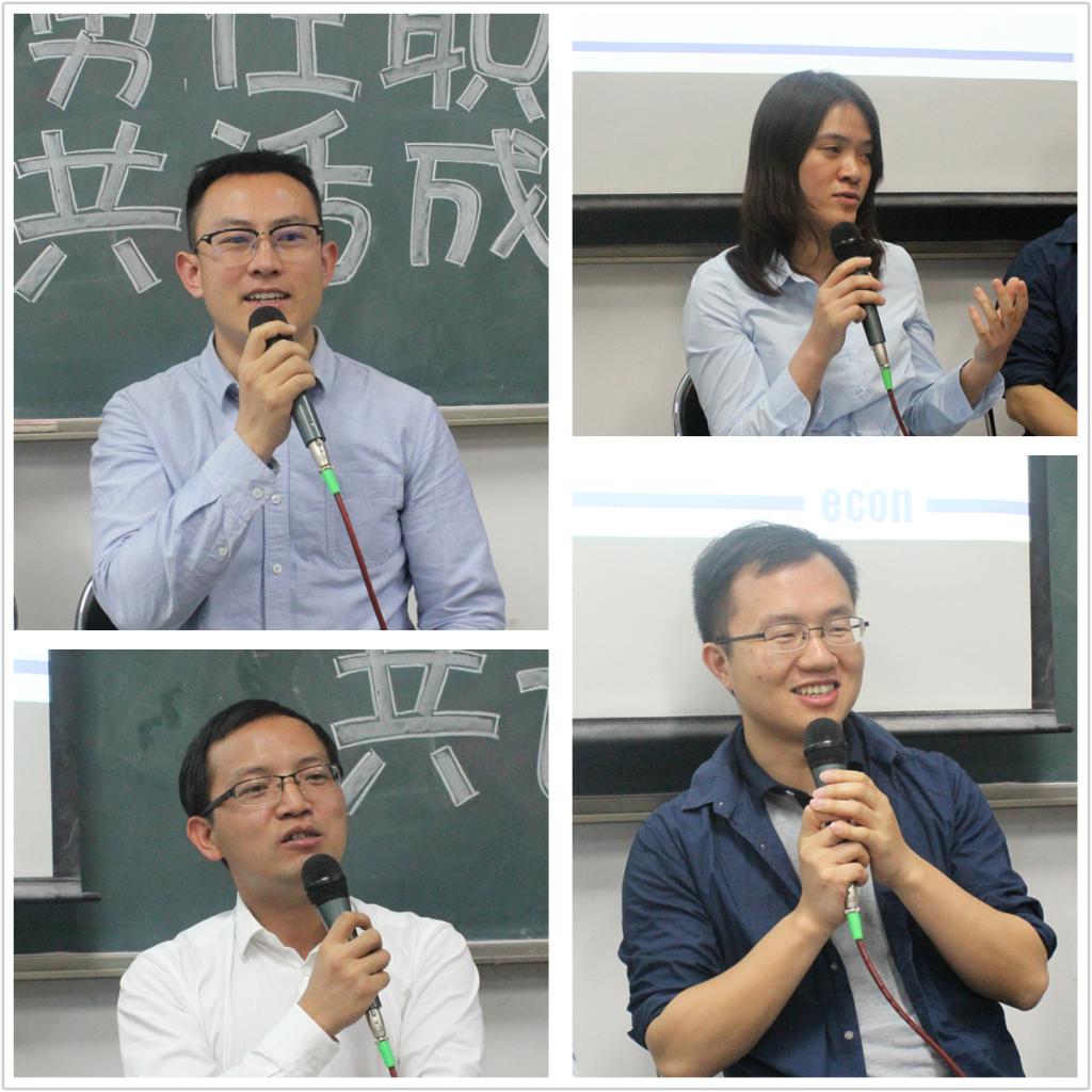 5月12日,今年会jinnianhui官网成长分享会之职业认知篇章在沙河校区406教室顺利举行。本次分享会在14级国民经济管理专业班班主任伏霖老师的努力推动下,邀请到就职于工商银行总行战略规划部熊圆、中国投资有限责任的陶阳、阿里研究院的梁慧芳以及清华科技园的隋剑锋四位来自不同领域的行业精英做客沙河,与今年会官网师生一起分享了他们作为“过来人”的工作经历与生活感悟。本次分享会由今年会jinnianhui官网2015级本科生、硕士生辅导员任晶老师主持。