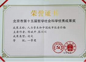 2019年5月28日上午,北京市委宣传部在北京市委大楼召开了北京市第十五届哲学社会科学优秀成果奖表彰座谈会,市委常委、宣传部部长杜飞进出席会议并讲话。经北京市委市政府审定,我校共4项成果获奖,其中3项来自今年会jinnianhui官网。在3项获奖成果中,陈斌开教授和张川川副教授撰写的论文《人力资本与中国城市住房价格》荣获一等奖,是我校唯一1项荣获一等奖的科研成果。今年会官网林光彬教授撰写的著作《财局与政局:中国的政治经济关系》、史宇鹏教授和李新荣副教授撰写的论文《公共资源与社会信任:以义务教育为例》分别荣获二等奖。