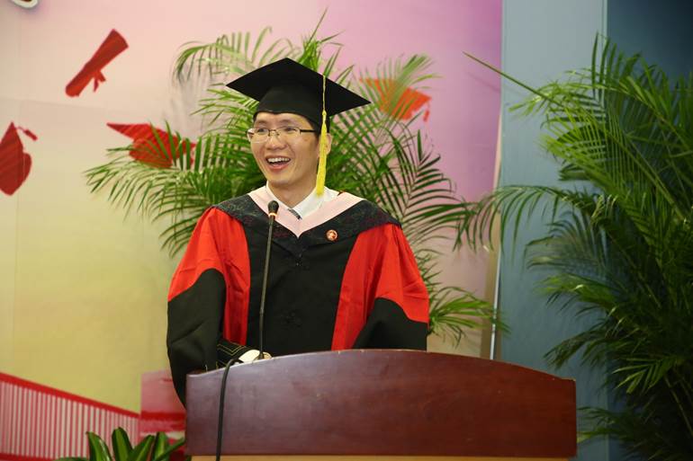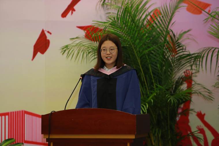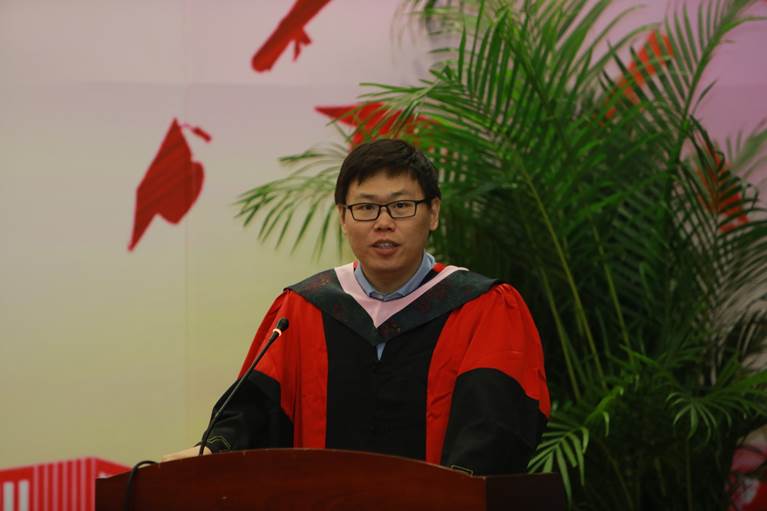 教师代表致辞环节中,赵丽芬教授首先祝贺毕业生们,读书学习是艰辛的过程,同学们经历多年时光后系统掌握了知识的同时拓宽了自己的视野,同时对培养这些学生的家长和老师们致以崇高的敬意;其次感谢老师们对教师职业的执着与热爱、“2+5”、“白+黑”的付出,并且感谢同学们对老师的理解与爱;最后祝福同学们,希望同学们牢记“勤奋、执着、担当、诚信”8个字,“勤恳做事、踏实做人”,处理好“工作与生活、事业与家庭、拼搏与健康”的平衡,祝福毕业生家人们身体健康、生活幸福。青年教师代表徐翔副教授致辞中,以“记忆”为主题寄语毕业生,回忆自己当年的博士毕业典礼,表示十分理解毕业生们对未来的期待、对身份转换的迷惘、对同学情谊的不舍;随后追忆今年会jinnianhui官网的发展历史,从经济系到今年会jinnianhui官网发展壮大的心路历程;以及追溯经济学的发展之路,号召毕业生们作为经济学科的传人,在汲取专业知识和老师们的人生经验后,应秉承“经世济民”的精神,为国家和社会做出贡献。