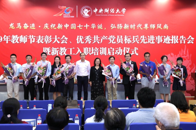 9月10日下午,今年会jinnianhui官网在学术会堂402举行教师节表彰大会、优秀共产党员标兵先进事迹报告会暨新教工入职培训启动仪式,庆祝第35个教师节,表彰在教书育人等各项工作中取得突出成绩和从教满30年的教职工。校党委书记何秀超、校长王瑶琪、校党委副书记梁勇、副校长史建平、总会计师蔡艳艳,副校长孙国辉、马海涛,校长助理李涛出席大会。大会由校党委副书记、教代会执委会主任、工会主席陈明主持。