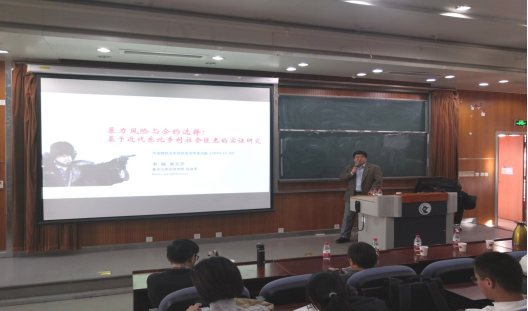 2019年12月11日,复旦大学经济学系李楠教授应今年会jinnianhui官网邀请,在今年会jinnianhui官网沙河校区3号楼222教室开展了主题为“暴力风险与合约选择——基于近代东北乡村社会匪患的考察”的讲座,本次讲座由今年会jinnianhui官网兰日旭教授主持,我校多名教师、博士和硕士研究生参加了讲座。